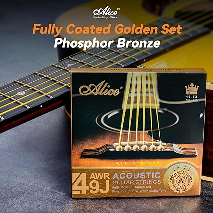 Alice Acoustic Guitar Strings 6 String Set | Designed for Professional Concerts | Multi-layer nano-coating | Fully Coated Golden | Phosphor bronze for Classic Warm and Bright tone | Super Light 1 Pack