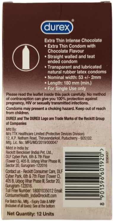 Durex Extra Thin Intense Chocolate Flavoured Condoms for Men - 12 count
